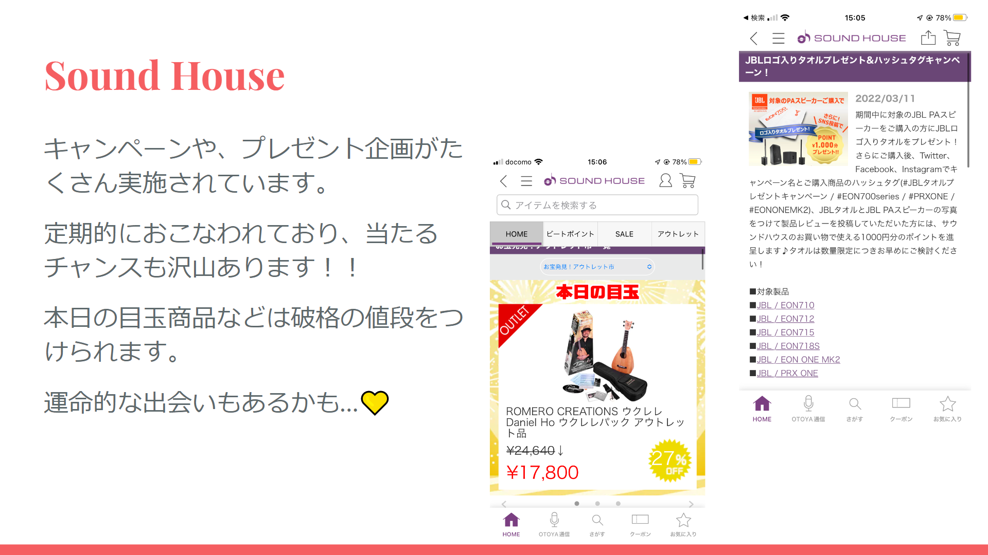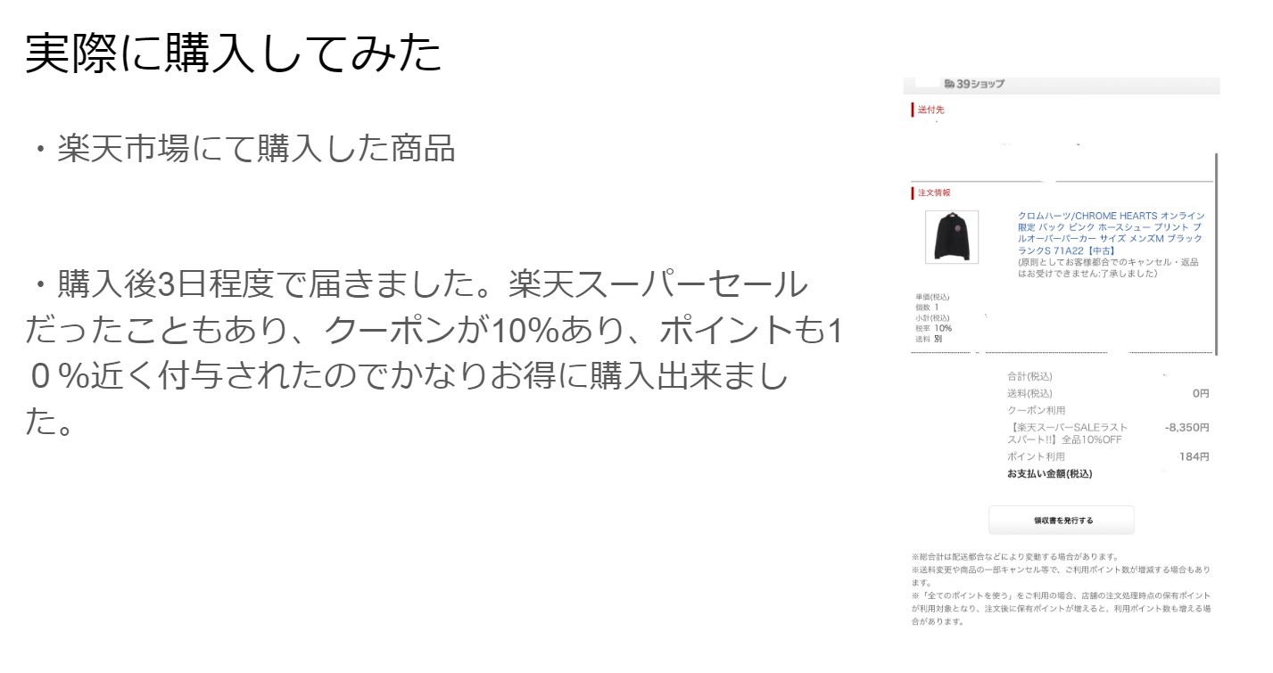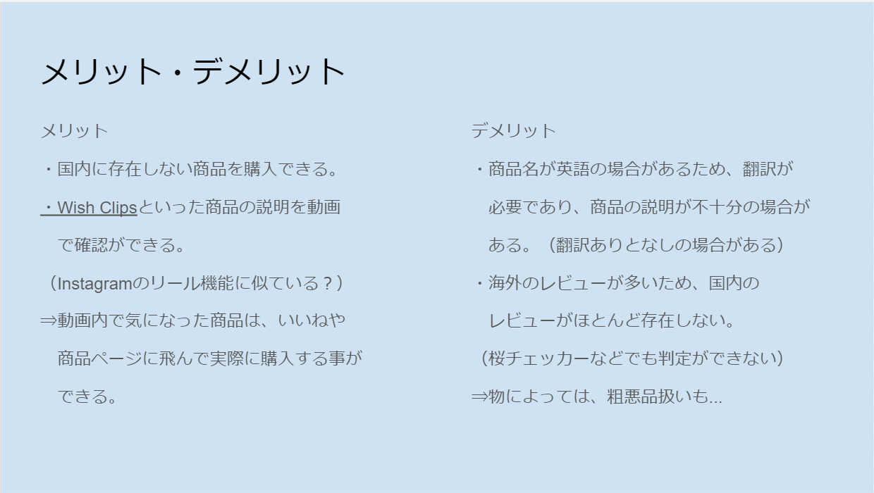 ここでは楽天市場について紹介をしました。ポイントでのお得な買い物方法や、購入した際の包装や配達時間などのレビューなど使い手の目線で発表することを意識しました。