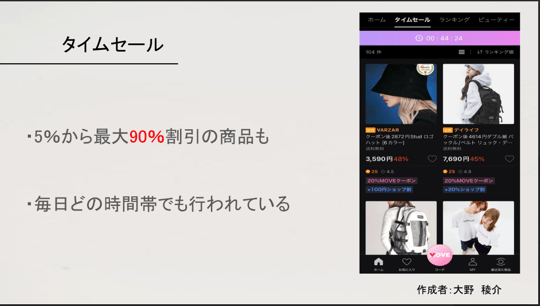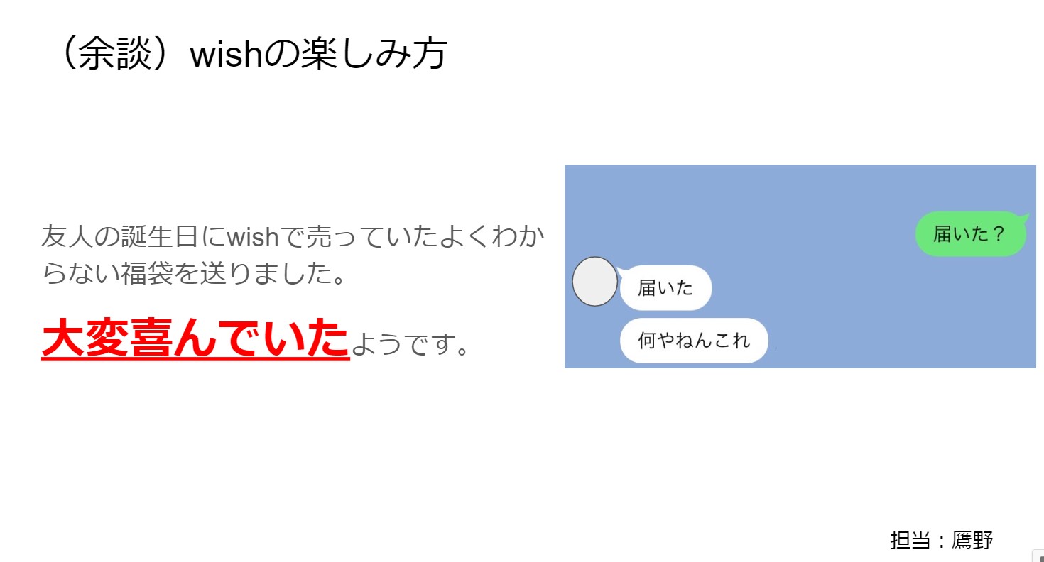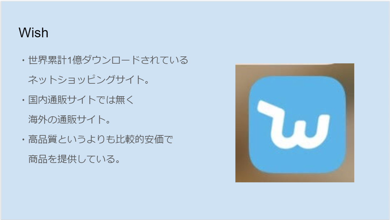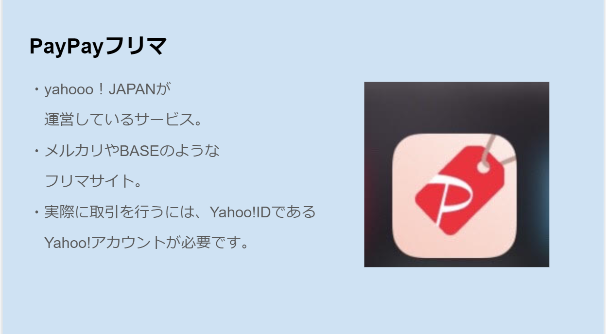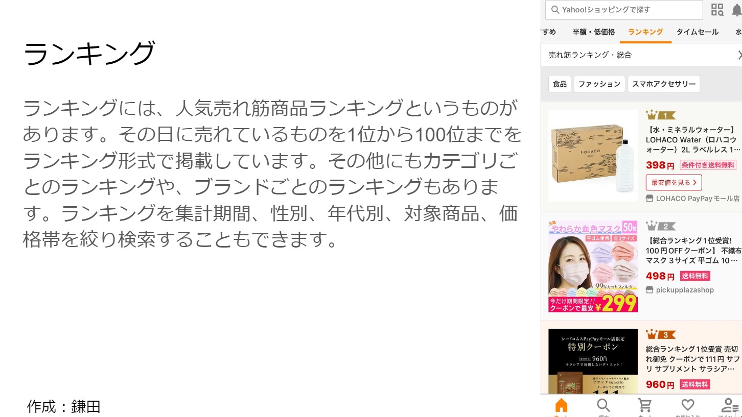 次に、Yahooショッピングについて紹介を行いました。ここでは、アマゾン同様にYahooショッピングの概要について紹介した後に、過去購入した商品の紹介を行いました。その中で、Yahooショッピングの魅力や特徴について触れて発表しました。