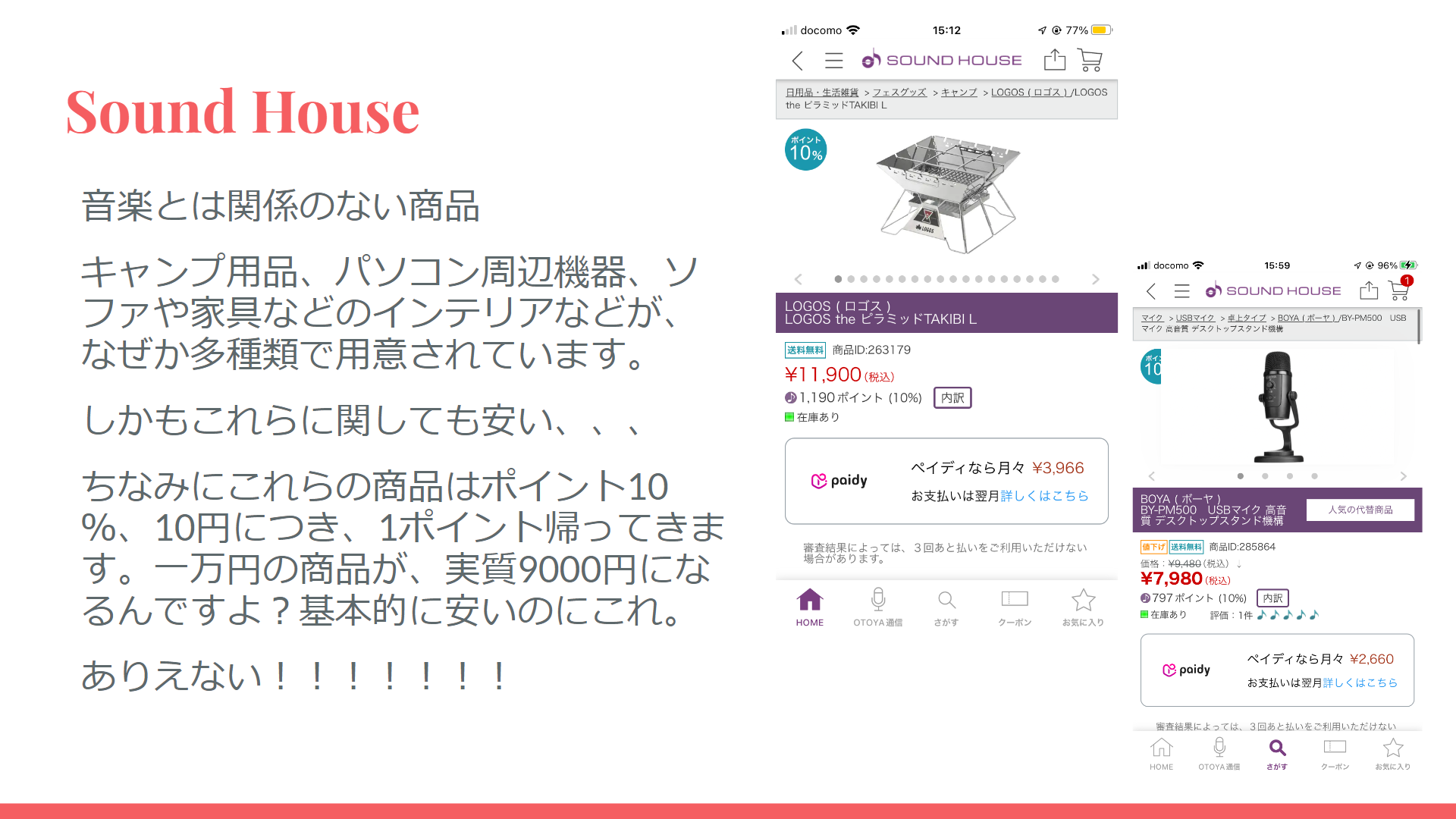 アマゾンの概要に触れた後に、実際に過去私が購入した商品の事例を見せながら紹介を行いました。