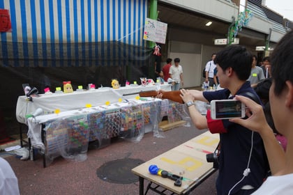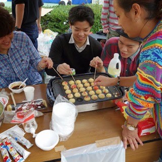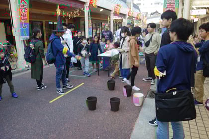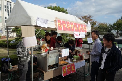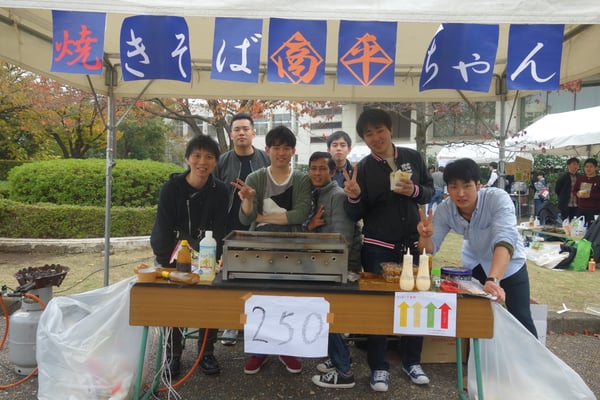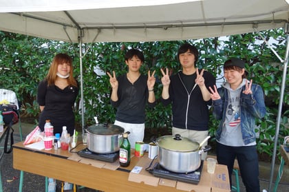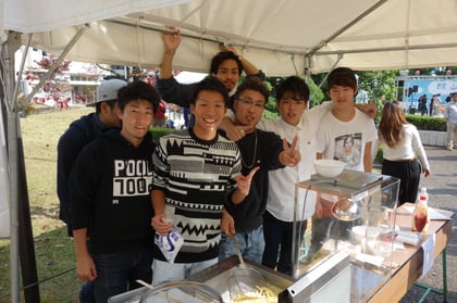 佐々ゼミと体育部連合会の学生が夜店の運営に協力する中、柳田ゼミは