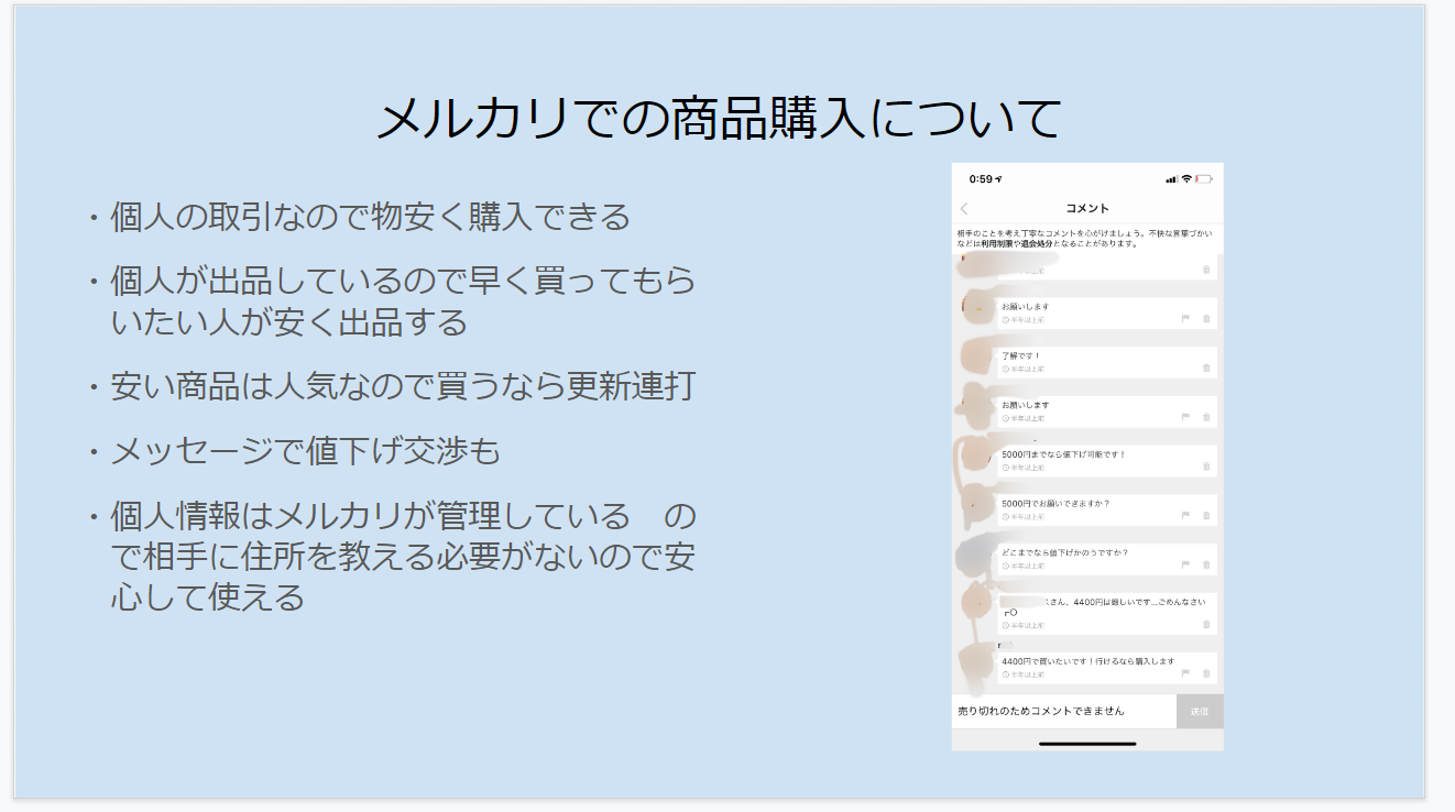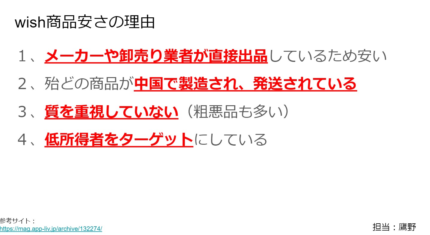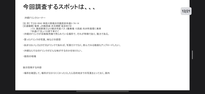 各班の個性が出たスライドが多数出て、今後の買い物にぜひ活用したいと思いました。