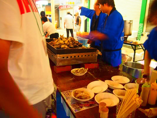 私たちは初日(30日)に訪問しましたが、すでにこの入り口からイカ焼きのいい匂いが漂ってきます。
