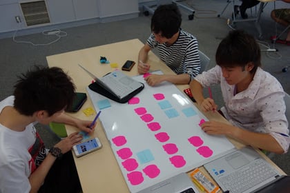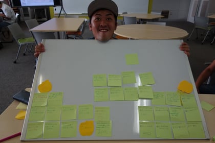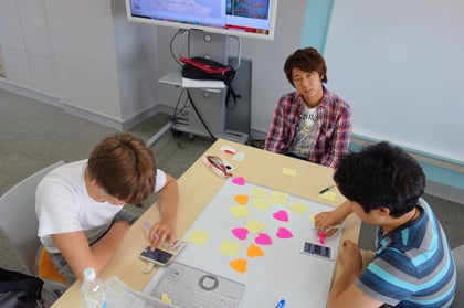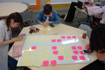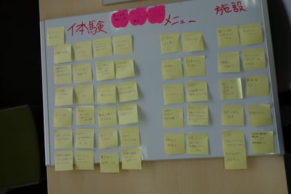 前回やったグループワークをもとにメモ用紙を場所や発信されているものなどのカテゴリーに分けて、どんなことを調べるかを決めました。