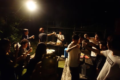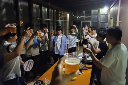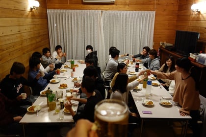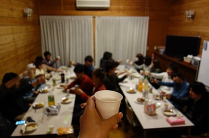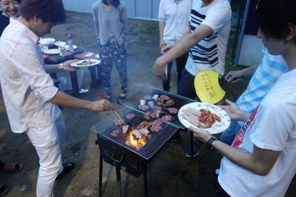 今回は、3年生と4年生の方が参加して、3年生は大学祭の打ち合わせを行い、その後4年生が合流して全員でバーベキューを行い、その後2次会も行いました。