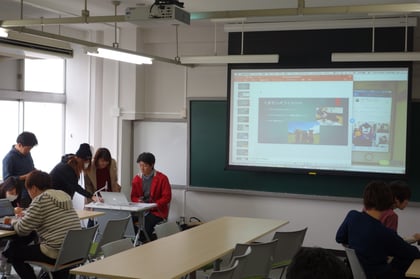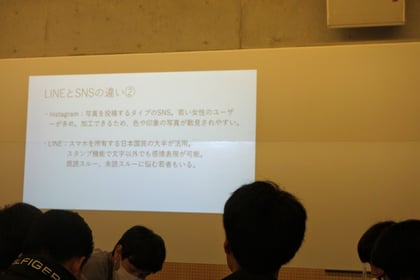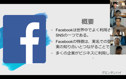 グループ別にfacebookのアカウント等を調べ、発表しあいました。