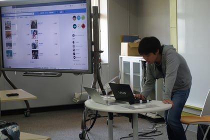 三年生が二年生にFacebookについて紹介し、