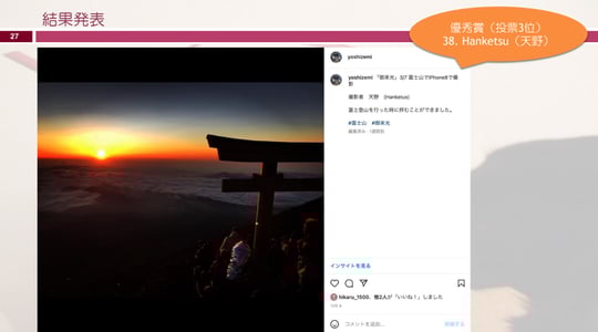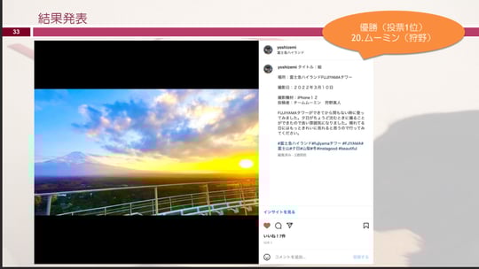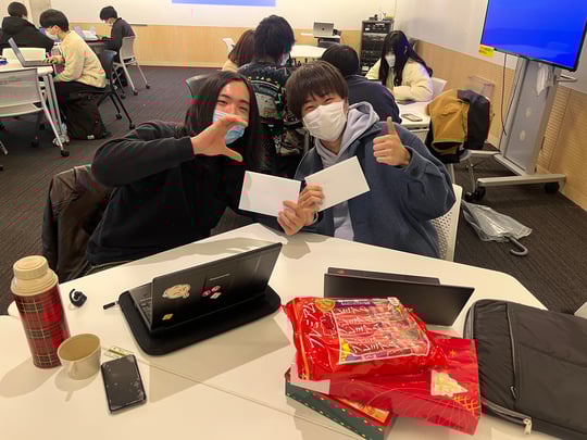 そこで「いいね」の数が多いチームの優勝で、赤尾君と山田君のチームが優勝しました。