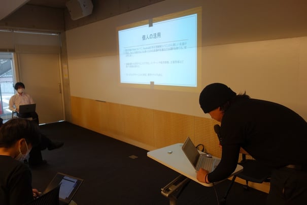 先輩目線のカメラです。2年生が今までやってきたプロジェクトの手直しや3年生の就職の情報交換などをしました。
